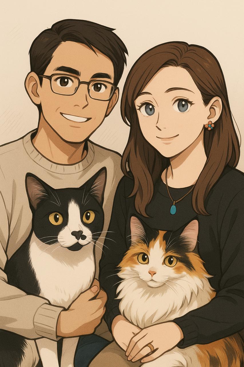 Tenemos 2 gatitos, Michi y Emi, nuestros compañeros de vida, con quienes tenemos una profunda conexión.